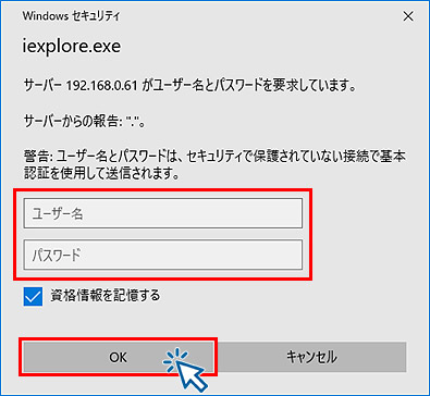 2.ログイン画面が表示されますので、必要な情報を入力して【OK】を左クリックします。