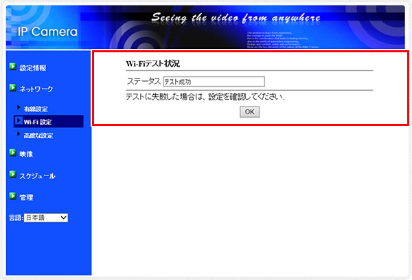 7.【テスト中】が【テスト成功】になれば【OK】と表示されるので、【OK】を左クリックします。