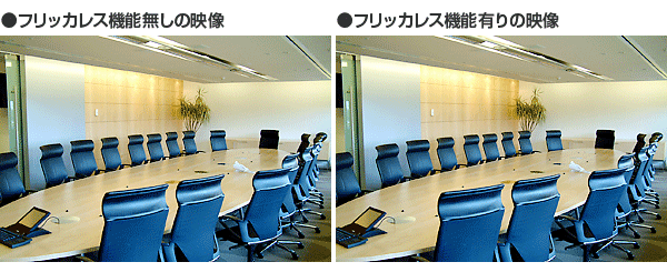東日本であっても、カメラの近くに照明が無い場所に設置される場合や、屋外で近くに蛍光灯や水銀灯などが無い場合はフリッカレス機能がないカメラもお使いいただけます。