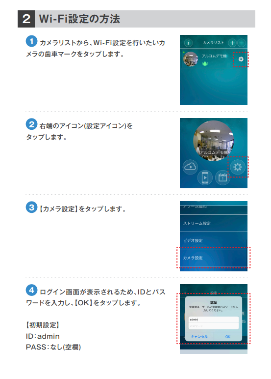 ホーム > CamViewシリーズ / RD-4755A / カメラについて / ミモール RD-4755AのWi-Fi設定方法について 【1】有線LANで接続してカメラ映像が見れる状態にします。 カテゴリー:CamViewシリーズRD-4755Aカメラについてミモール 関連投稿 CamViewシリーズ / RD-4755A / ミモール 【スマホ版mCamView2】初期設定(カメラの追加)の方法を教えてください。 カメラについて 東日本ではフリッカレスカメラしか使えないのでしょうか? RD-RN8108シリーズ / カメラについて / ネットワークカメラの質問 / レコーダーについて / レコーダーについて RD-RN8116B(NVR5.0)カメラ名称の変更方法 CamViewシリーズ 【スマホ版mCamView2】映像を反転する方法を教えてください。 カメラについて / ネットワークカメラの質問 【microSDカード・単独運用】RD-CIシリーズ・SDカードの初期化(フォーマット)について CamViewシリーズ 【PC版CamView】映像を反転する方法を教えてください。 前の投稿 RD-4755Aのパスワードリセット方法について 次の投稿 RD-RN8108B(NVR5.0)のP2P接続方法について