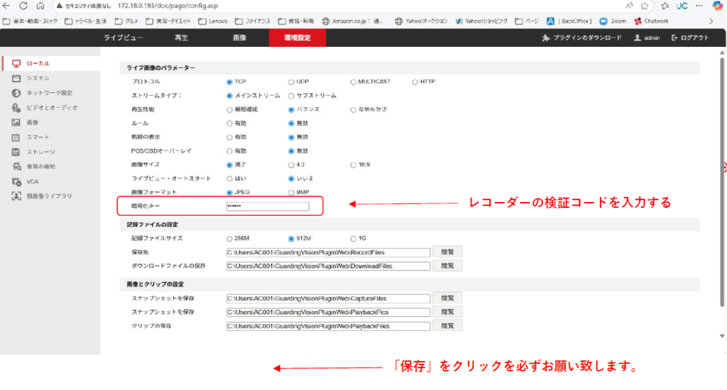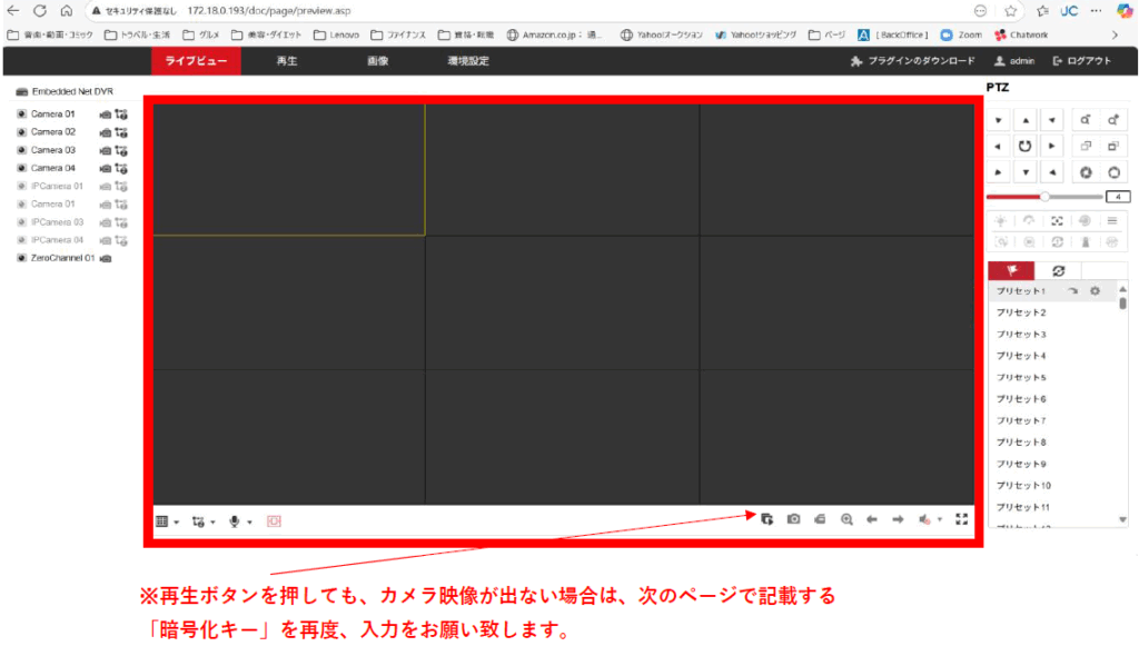 プラグインは正常にインストール出来ているがPCでライブビュー表示が出来ない(暗号キーを入力してください)と画面に出る場合の対処方法について