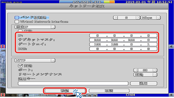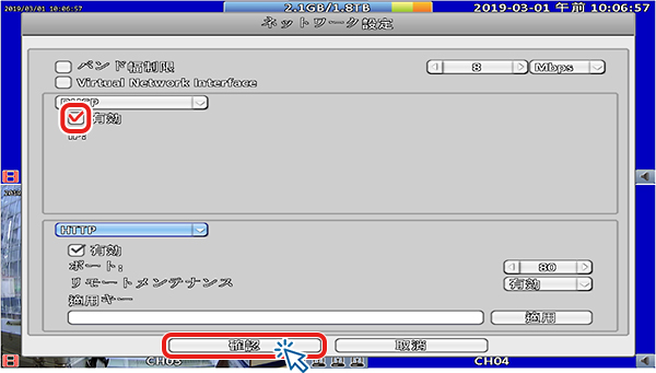 全て設定後、ウィンドウ下部の【確認】をクリックしてレコーダーの設定は完了です。