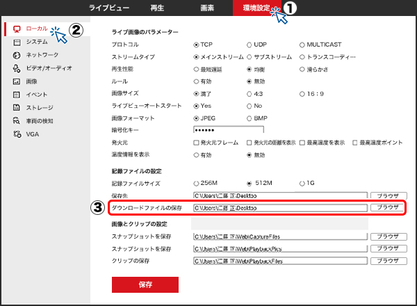 ③ダウンロードファイルの保存先を指定します。