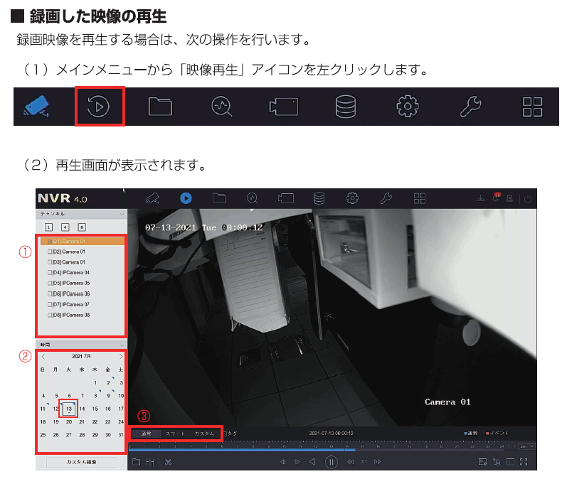 ホーム > RD-RN8108シリーズ 【時間を指定して録画映像を再生】/RD-RN81シリーズ ■対象型番RD-RN8108,RD-RN8109,RD-RN8116,RD-RN8117,RD-RN8119■検索キーワード時間指定再生、映像再生、録画再生、映像の確認 カテゴリー:RD-RN8108シリーズ 関連投稿 RD-RN8008シリーズ / RD-RN8104 / RD-RN8108シリーズ 【ファームアップ ファーム更新手順】/RD-RN81シリーズ RD-RN8108シリーズ / レコーダーについて / 未分類 RD-RN8108B(NVR5.0)システムログの確認方法について RD-RN8108シリーズ / レコーダーについて RD-RN8108B(NVR5.0)の自動切り替え(シーケンス)の設定方法について RD-RN8108シリーズ / RD-RV55シリーズ、RD-RV2704、RD-RV2804 GuardingVisionスマホアプリ 機器のシェア/共有方法 RD-RN8108シリーズ 【シャットダウンする方法 録画機の電源を切る方法】/RD-RN81シリーズ RD-RN8008シリーズ / RD-RN8108シリーズ 【録画設定(コマ数や解像度)の変更方法】 /RD-RN80シリーズ,RD-RN81シリーズ/ 前の投稿 【モーション録画 動体検知録画設定】/RD-RN81シリーズ 次の投稿 【パスワードを変更する方法】/RD-RN81シリーズ