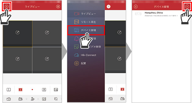 3.画面が起動したら左上のアイコンをタップします。メニュー中の【デバイス管理】を選択し、右上の【+】をタップしてください。