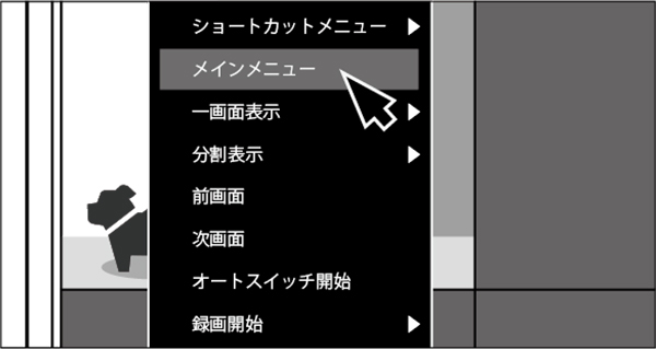 2.メニューが表示されたら【メインメニュー】を左クリックします。