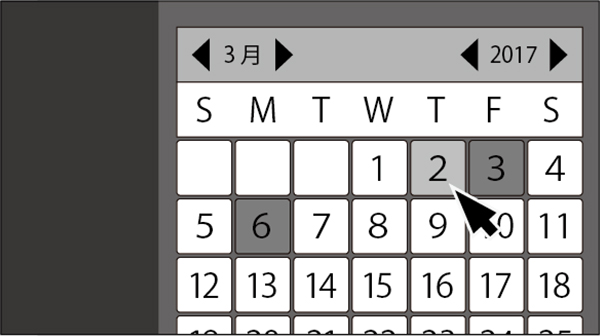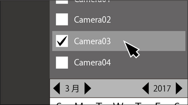 5.録画されている日(青く表示されている日付)の中で再生したい日付を左クリックします。
