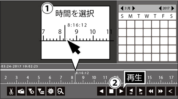 6.再生したい録画時間にバーを合わせて再生ボタンを押すと再生できます。