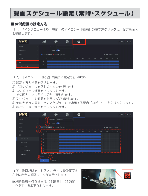 常時録画設定、常に録画設定、ずっと録画設定、通常録画設定、24時間録画、毎日録画