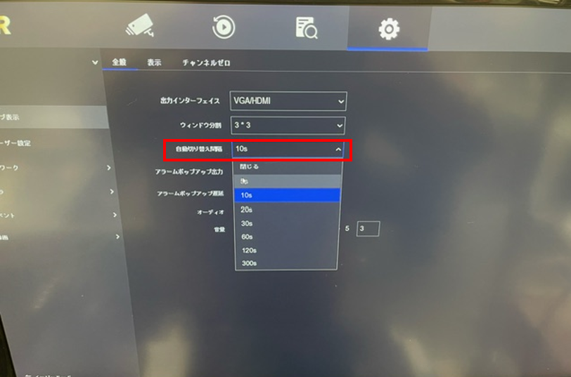 ③シーケンスの画面切り替えの時間を変更する際は歯車アイコンの設定⇒ライブ表示