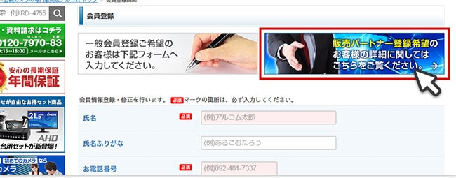 一般会員登録をご希望の方はそのまま、販売パートナー(販売代理店)登録をご希望の方はフォーム上にある右のバナーをクリックしてご登録ください。