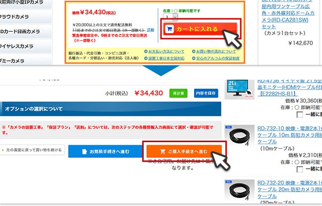 1.カートに商品を入れ、【ご購入手続きへ進む】をクリックします。