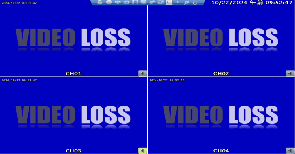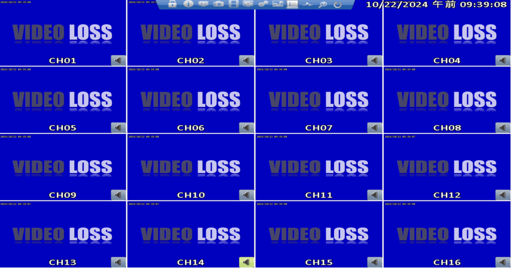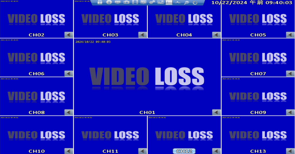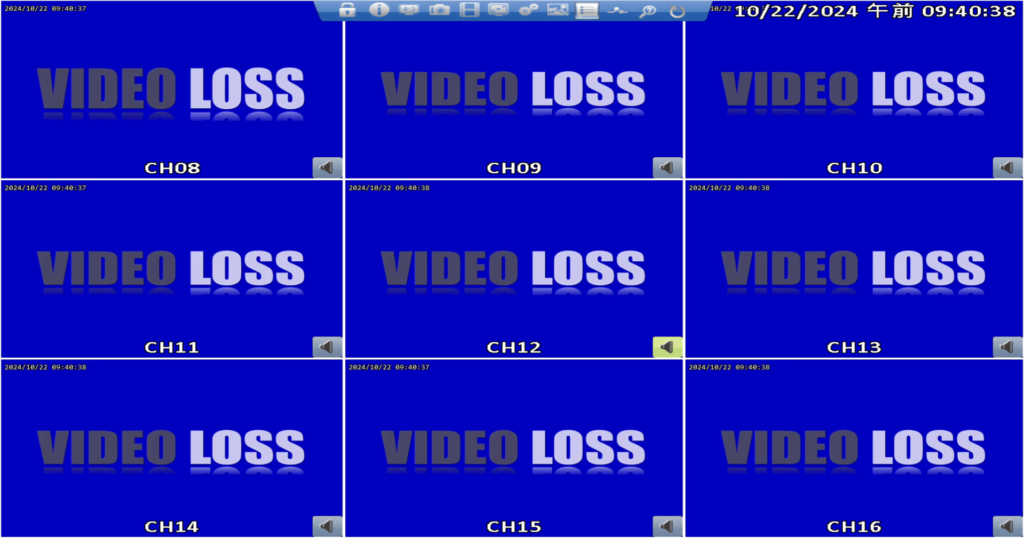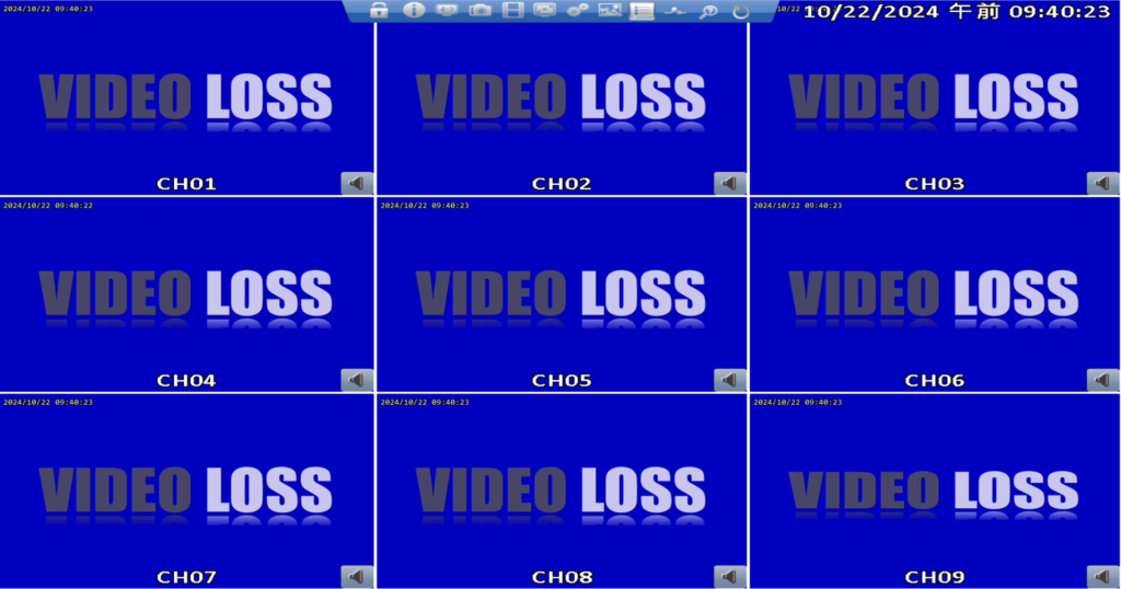 ※8chレコーダーの場合、9分割時は画面右下が青色で表示される仕様となっております。