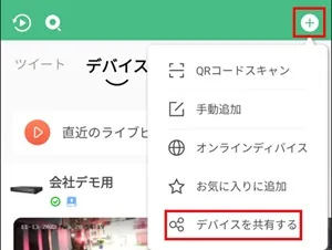 Guarding Vision 右上の+を押し、「デバイスを共有する」をクリックします。